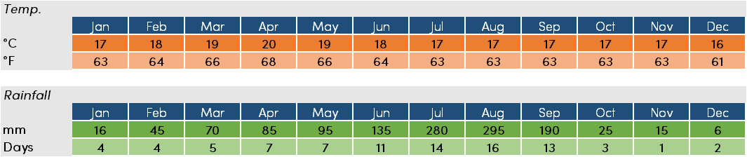 Average annual temperature and rainfall: